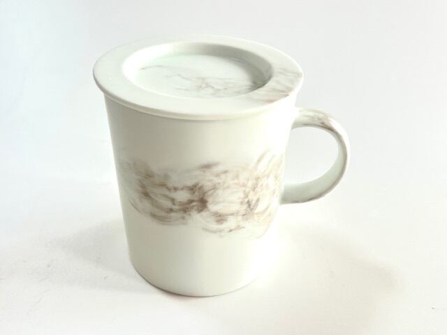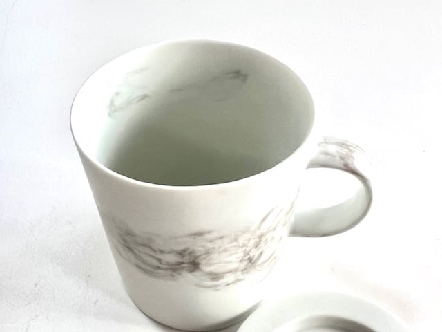 蓋付きで紅茶の蒸らしにも便利な有田焼マグカップ。口当たりの良い厚みと、持ちやすさを考えた安定感あるハンドル設計で、日常に心地よさを添えます。有田国際陶磁展で技能賞を受賞した“空”の柄が、優しい時間を彩ります。